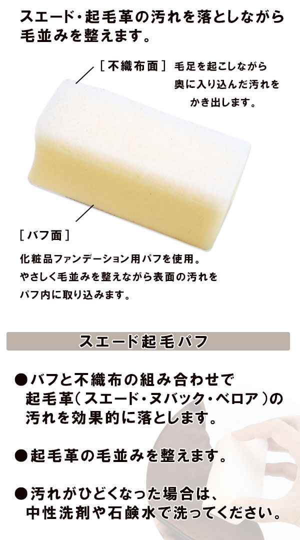 スエード 起毛パフ スエード用 汚れ落とし スポンジタイプ クリーナー 靴 手入れ スウェード くつ ※この商品はラッピング対象外です。スエード・起毛革の汚れを効果的に落としながら毛並みを整えます。 販売価格 770円(税込み) 会員価格 (税込み) 通常価格 (税込み) 在庫 3 商品コード 4971671-948730 JANコード 4971671948730 数量 - + カートに入れる カテゴリー スポンジ メーカー コロンブス キャンペーン スエードのお手入れ RECOMMENDEDおすすめアイテム レザーキュア ヌバック スエード栄養ミスト (ニュートラル) 100mL ムショク 起毛革 スウェード 栄養補給 1,320円(税込み) ジャーマンブラシ10 真鍮製スエード専用 靴 くつ 手入れ 汚れ 起毛革 スウェード ホコリ 1,100円(税込み) スエードフレッシュアップ 280mL スエード 起毛革 専用 保革 防水スプレー 1,760円(税込み) コロンブス スエードブラシ ステンレス製 靴 くつ 手入れ 毛 起毛革 スウェード ホコリ 雨 雪 3,300円(税込み) ヌバック スエード スターターセット お手入れ セット 靴 くつ バッグ カバン コート 起毛革 スウェード 新生活 雨 雪 2,200円(税込み) スエードブラシB 汚れ落とし 毛足の整え スエード 靴 くつ 手入れ 起毛革 スウェード 550円(税込み) スエードブラシC 汚れ落とし 毛足の整え スエード 靴 くつ 手入れ 起毛革 スウェード 550円(税込み) スエードカラー180 補色スプレー 起毛革 靴 色褪せ スウェード くつ 180mL 雨 雪 1,320円(税込み) BootBlack ブートブラック スエードリッチモイスチャー 100mL アルガンオイル配合 スウェード 3,300円(税込み) スニーカーケア スエードブラシセット ケアセット ヌバック スエード 汚れ落とし 靴 くつ 手入れ 起毛革 スウェード 新生活 運動会 体育祭 990円(税込み) CAMPAIGNキャンペーン 足元の冷えやムレ・ニオイ対策 雨・雪・カビ対策アイテム スニーカーケア 年末年始をキレイな靴で ブーツのお手入れ アウトドアグッズのケア BootBlackシリーズ BootBlack Relax シリーズ スエードのお手入れ 足の悩み緩和 ベルガル・コンフォートコンセプトシリーズ プロ仕様仕上剤・リペア剤 新生活応援アイテム 就活応援アイテム チューブ入りクリーム SALE&アウトレット 靴・ブーツを片付ける時に! CATEGORYカテゴリー 靴クリーム・靴墨・WAX ツヤ革用 スエード・起毛革 オイルレザー デリケート・ソフト革 エナメル用 リザード・クロコ コードバン その他 ラバー素材 クリーナー・汚れ落とし ツヤ革用 スエード・起毛革 カビ用クリーナー エナメル 家具用 補修・リペア 防水スプレー・撥水スプレー・クリーム 除菌・消臭・乾燥剤 靴用消臭スプレー・パウダー 除菌ミスト 乾燥剤 ブラシ・クロス・スポンジ ブラシ 磨き用クロス グローブタイプ靴磨き スポンジ ハンドバッグ・革小物 シューケアセット 業務用商品 オートポリッシャー・自動靴みがき レザーウェア・革ジャン キーパー・ストレッチャー シューストレッチャー キーパー・シュートリー【男性用】 キーパー・シュートリー【女性用・レディース】 レザークラフト・革工芸 シューホーン・靴べら 靴ひも・シューレース スニーカー・アウトドア ビジネスシューズ 靴底・ソール ハンディユキダスシリーズ インソール 足の悩み緩和 インソール・中敷き 大きいサイズ32cm こども用 かかとアップ スポーツ・ウォーキング ベルガルシリーズ 防寒インソール 2026年01月 日 月 火 水 木 金 土 1 2 3 4 5 6 7 8 9 10 11 12 13 14 15 16 17 18 19 20 21 22 23 24 25 26 27 28 29 30 31 2026年02月 日 月 火 水 木 金 土 1 2 3 4 5 6 7 8 9 10 11 12 13 14 15 16 17 18 19 20 21 22 23 24 25 26 27 28 休日