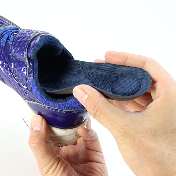 かかと部分のカップ形状が靴の中で不安定になりがちな足をしっかり安定させます。