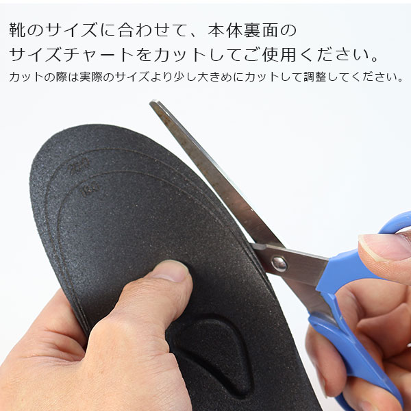 ○靴のサイズに合わせて、本体裏面のサイズチャートをカットしてご使用ください。カットの際は実際のサイズより少し大きめにカットして調整してください。