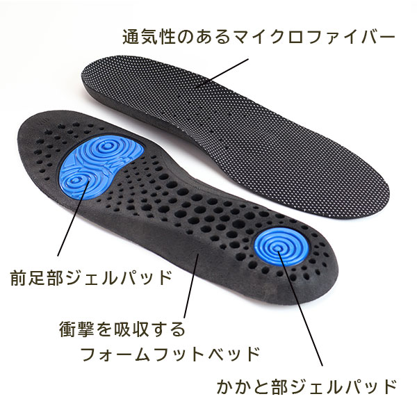 ○通気性のあるマイクロファイバーを使用した、スニーカーやスポーツシューズに最適で軽量なインソールです。