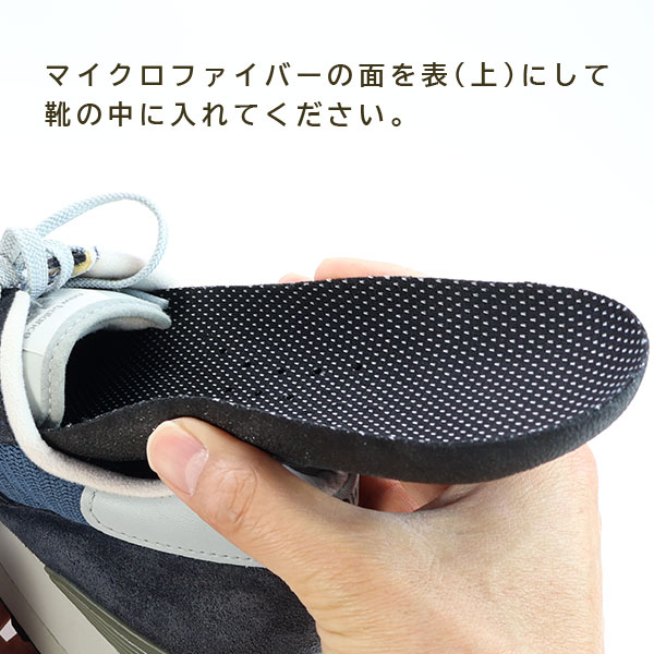 ○マイクロファイバーの面を表(上)にして靴の中に入れてください。